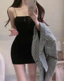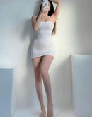 Pure Color Tight Flat Strap Dress Autumn And Winter New