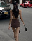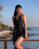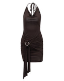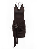Swing Collar Pleated High Waist With Straps Slim Fit Backless Halter Dress